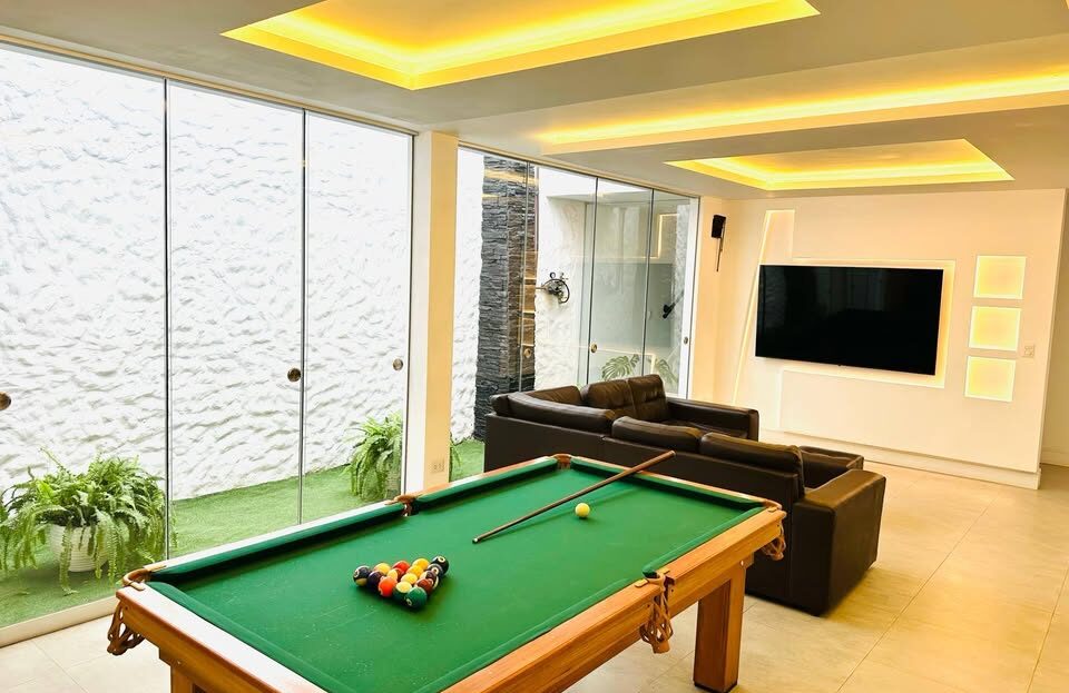 El Espacio: . La sección de estilo colonial consta de tres habitaciones y baños,  Debajo del amplio patio, descubre un oasis moderno que rompe la monotonía, con una zona de televisión para noches de cine familiares o diversión en la mesa de billar. Este refugio subterráneo incluye dos dormitorios con baños. La zona subterránea está conectada a la casa principal por dos túneles que recuerdan a la época colonial. El extenso patio alberga una serena piscina con tumbonas frente a la casa principal, creando una escapada perfecta al aire libre. Una acogedora sala de estar al aire libre, centrada alrededor de una impresionante chimenea, agrega calidez durante las noches frías y los días de invierno. «Casona de Lurin» es tu retiro en casa lejos de casa, que ofrece un ambiente atemporal que te transporta a otra era al tiempo que proporciona todas las comodidades del mundo actual desde el momento en que entras. Acceso de los Familiares o huéspedes disfrutarán de acceso completo a todas las partes de la casa, incluidos los tres dormitorios y los tres baños en la casa principal sobre el suelo, y los dos dormitorios y dos baños en el área subterránea. Espacios para otra habitacion, adicionalmente cuenta con 2 baños mixtos con urinarios para tus eventos o reuniones familiares. Los huéspedes o familiares podrán acceder al garaje adyacente y dentro del jardín se puedria acondicionar estacionamientos. Otros aspectos a destacar La residencia puede alojar grupos de hasta mas de 16 personas. El número de camas preparadas durante tu estadía estará determinado por el número de huéspedes. Para cualquier consulta, no dudes en ponerte en contacto 4 Años construidos Piscina Temperada 👈 AT: 789.86m2 AC:327.59m2 OCASIÓN: $450,000.00